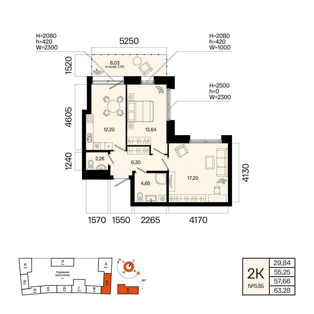 Этаж 8, Квартира №53Б