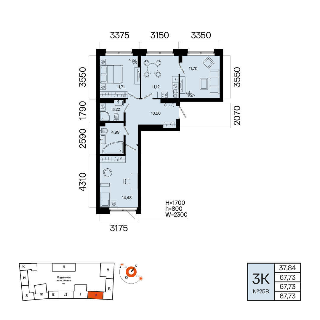 Этаж 6, Квартира №25В