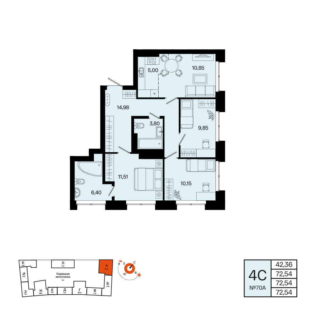 Этаж 11, Квартира №70А