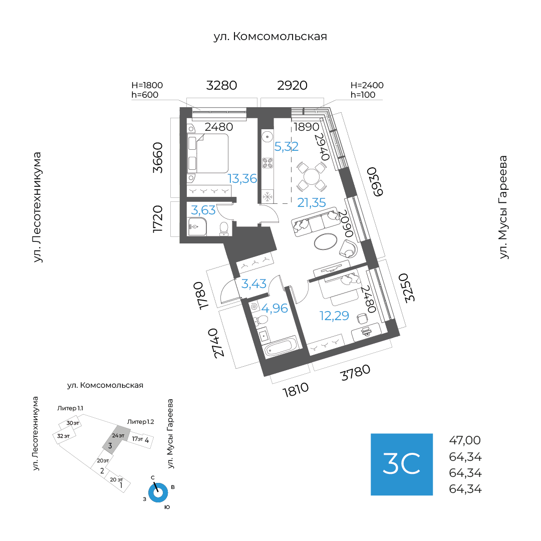 64.34 м²