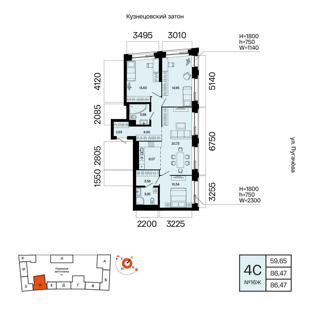 Этаж 5, Квартира №16Ж