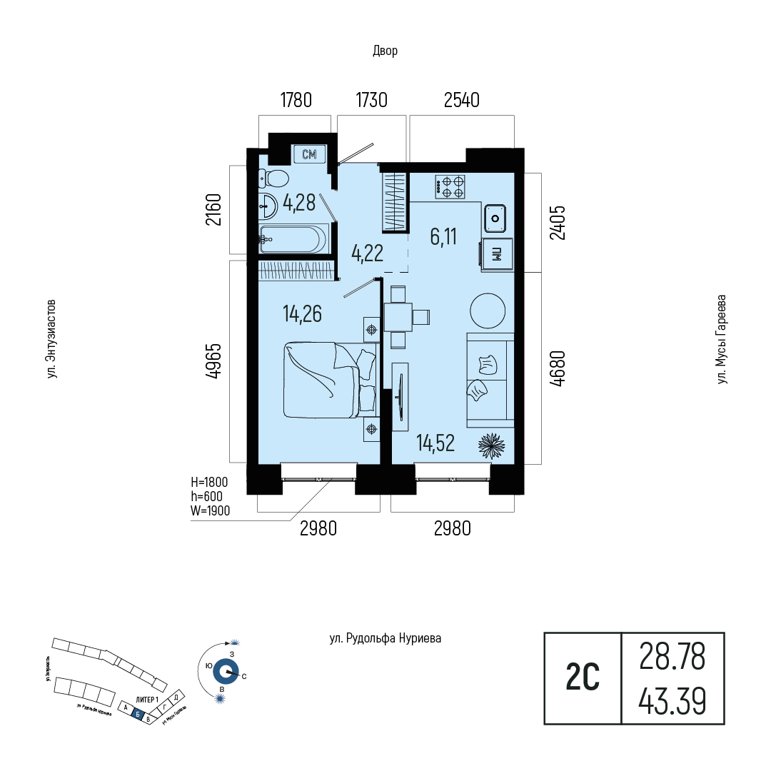 Новатор, Литер Литер 1, Секция 2,