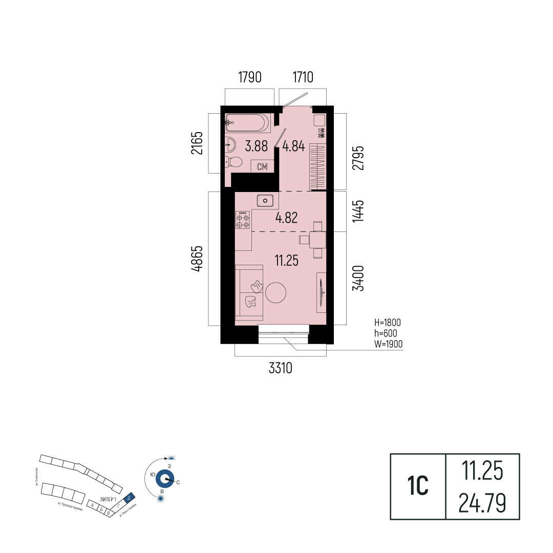 24.79 м²