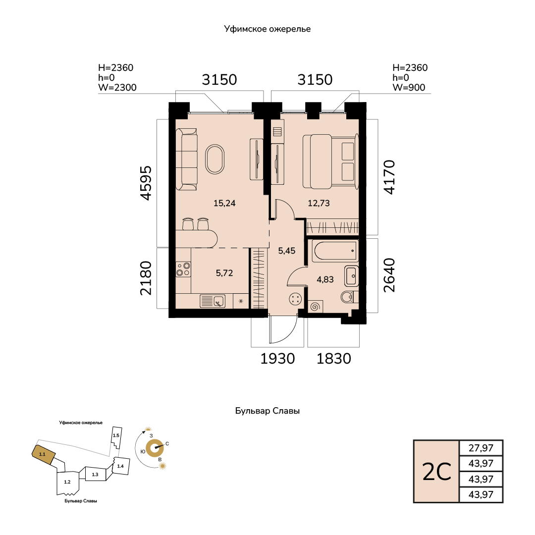 43.97 м²