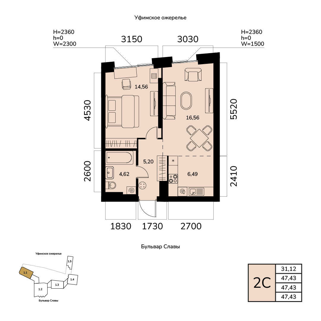 47.43 м²
