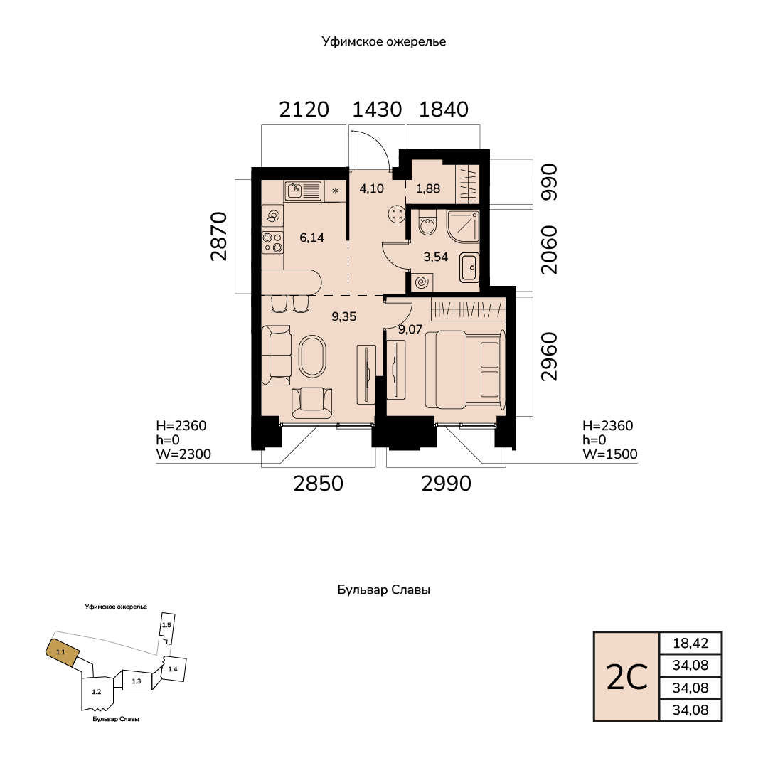 34.08 м²