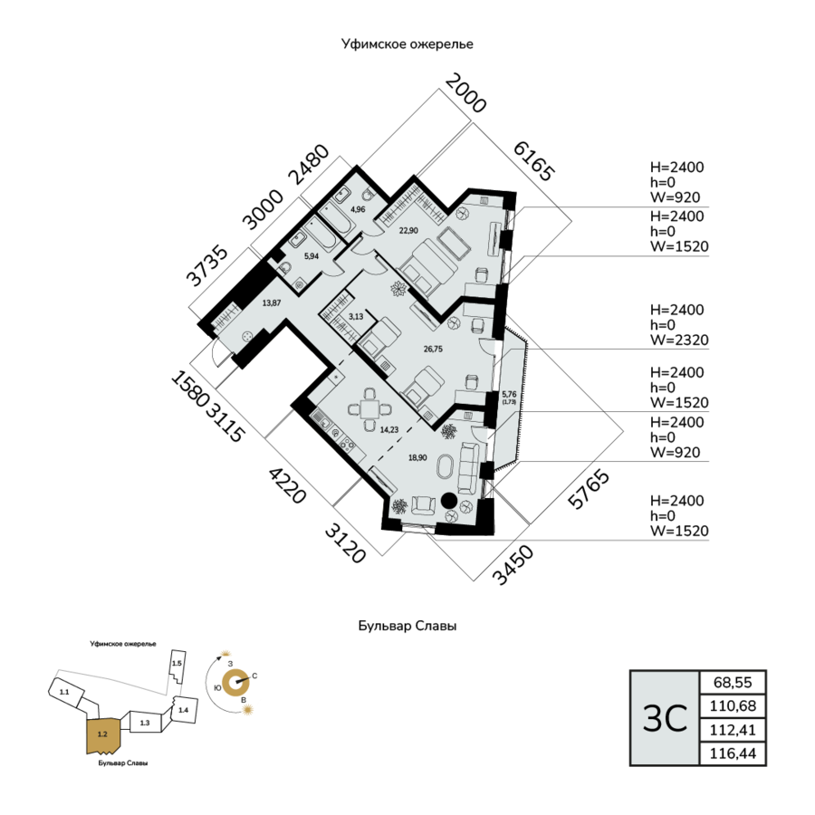 4 кв. 2028 г.3112.41 м268.55 м2Литер 12Предчистовая3/25118По запросуот 143 960 ₽