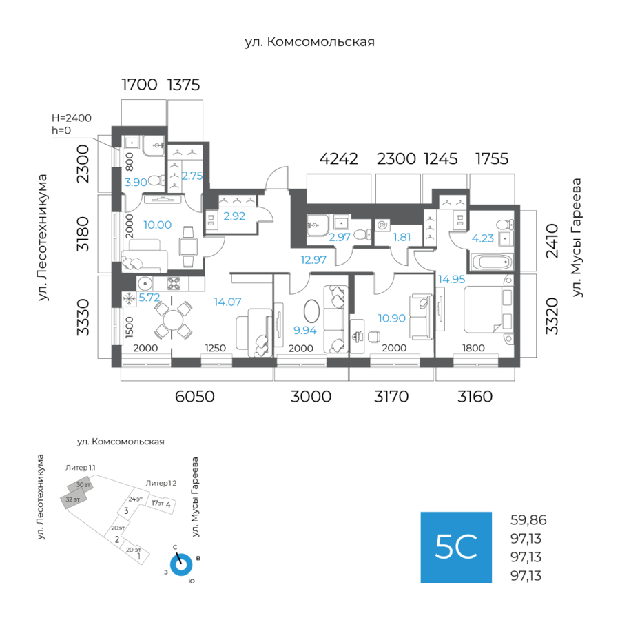 3 кв. 2027 г.597.13 м259.86 м2Литер 11Предчистовая32/32356По запросуот 143 960 ₽