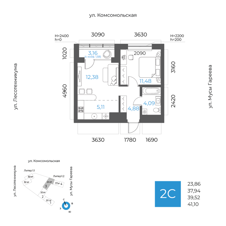 3 кв. 2027 г.239.52 м223.86 м2Литер 1.23Предчистовая23/24550По запросуот 143 960 ₽