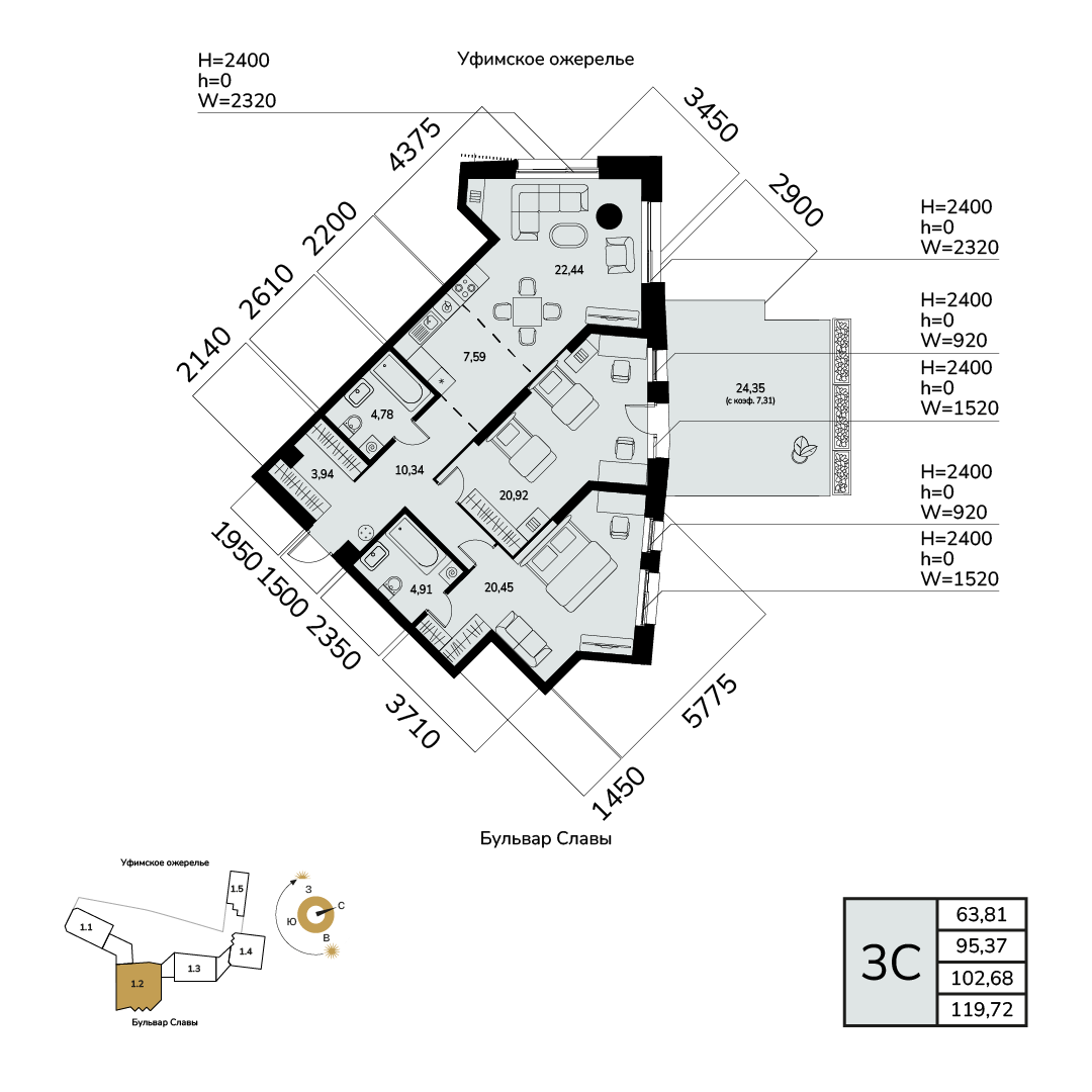 4 кв. 2028 г.3102.68 м263.81 м2Литер 12Предчистовая2/25114По запросуот 143 960 ₽