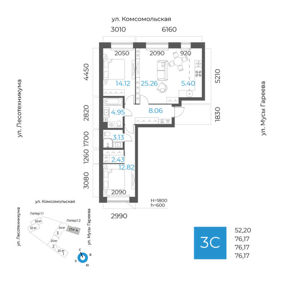3 кв. 2027 г.376.17 м252.20 м2Литер 1.24Предчистовая2/24569По запросуот 143 960 ₽