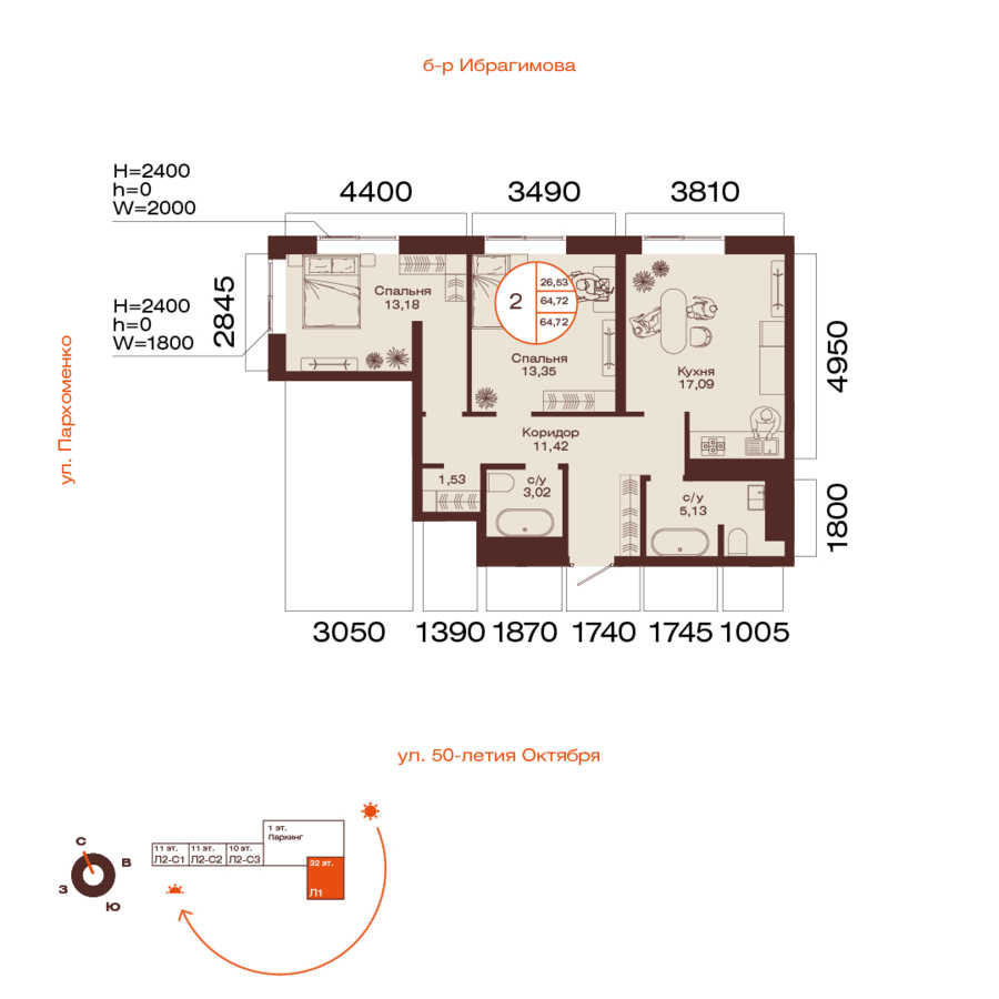 1 кв. 2027 г.264.72 м226.53 м2Литер 11Предчистовая17/32296По запросуот 143 960 ₽