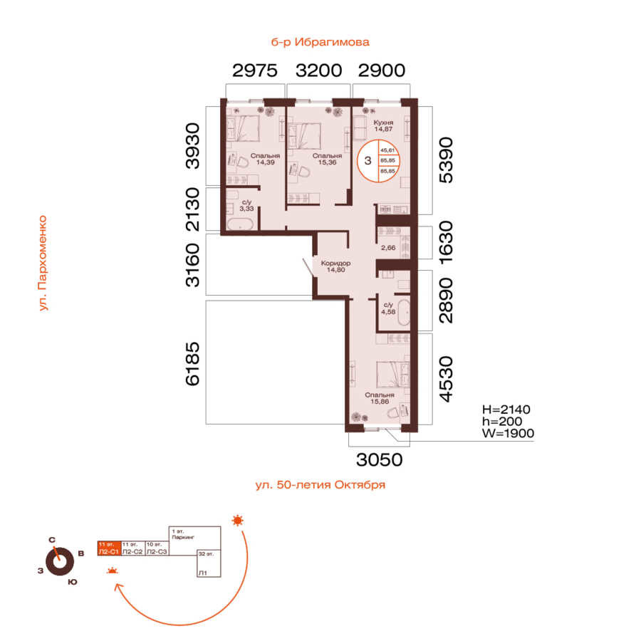 3 кв. 2027 г.597.13 м259.86 м2Литер 11Предчистовая32/32356По запросуот 143 960 ₽