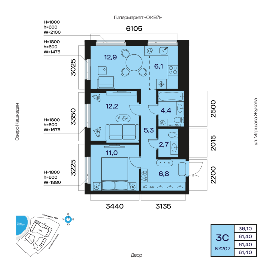4 кв. 2027 г.361.40 м223.20 м2Литер 12Предчистовая6/31207По запросуот 143 960 ₽