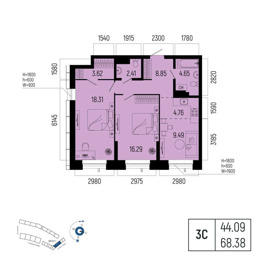 1 кв. 2029 г.369.32 м238.56 м2Литер 15Предчистовая15/18665По запросуот 143 960 ₽