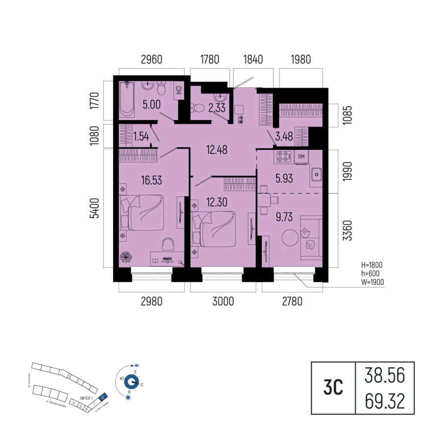 3 кв. 2027 г.377.01 м242.64 м2Литер 5.28Предчистовая2/251060По запросуот 143 960 ₽