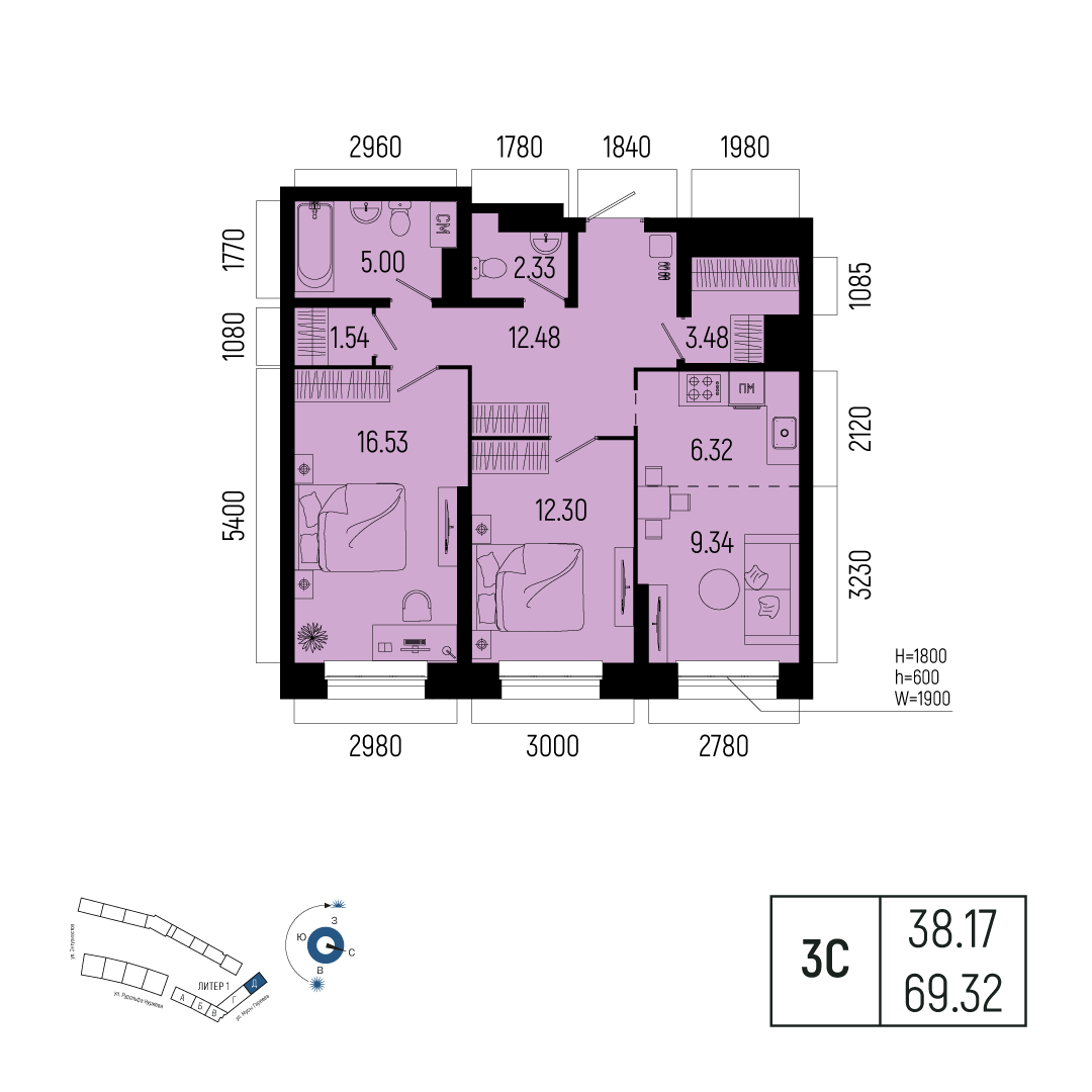 1 кв. 2029 г.369.32 м238.56 м2Литер 15Предчистовая18/18689По запросуот 143 960 ₽