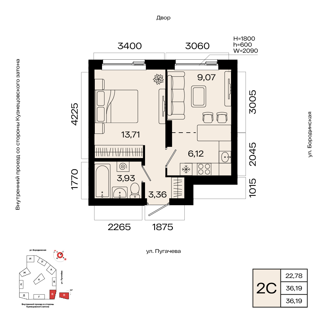 г.236.10 м20.00 м2Литер 13Предчистовая9/3188ВПо запросуот 143 960 ₽