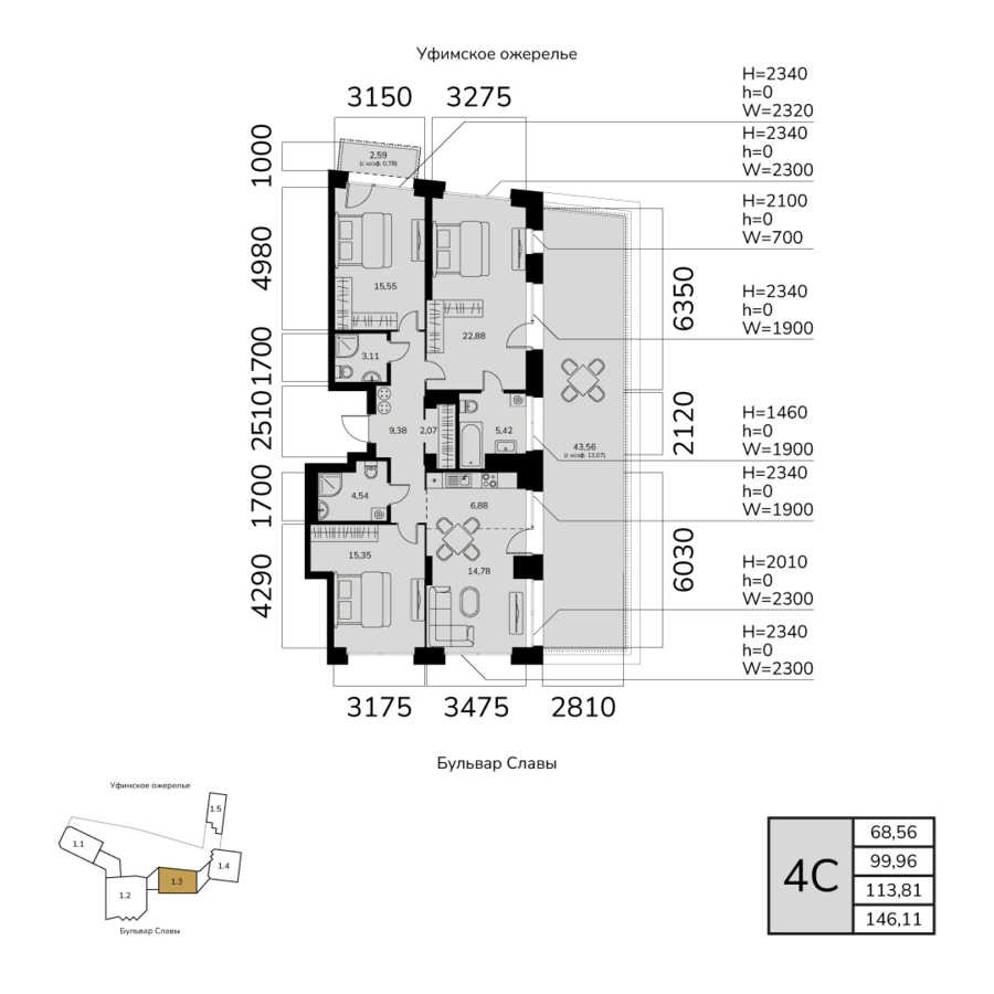 4 кв. 2028 г.4113.81 м268.56 м2Литер 13Предчистовая4/25340По запросуот 143 960 ₽