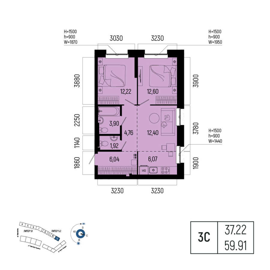 3 кв. 2027 г.359.91 м237.22 м2Литер 5.28Предчистовая2/251059По запросуот 143 960 ₽